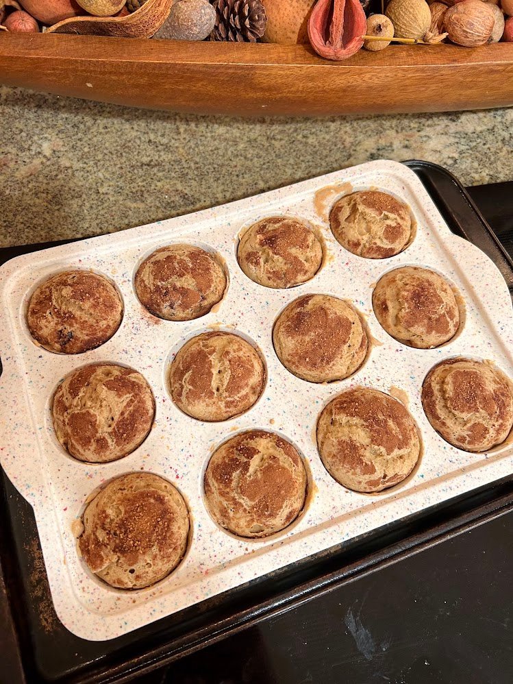 Topping: This is a super simple topping, only including cinnamon and coconut sugar (you can use granulated sugar or brown sugar if you would prefer). Simply mix the 2 ingredients in a small bowl, then use a small spoon or 1/4 teaspoon to evenly distribute/sprinkle the topping over each muffin.