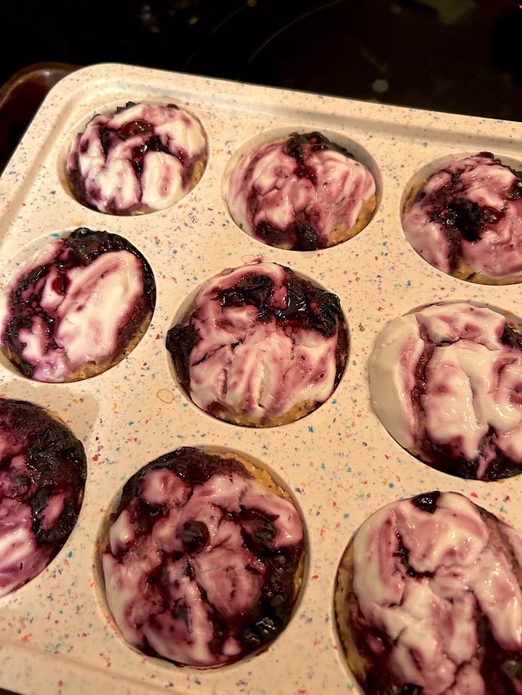 When it came to this particular recipe, my inspiration came from various baked oats recipes. I continued to see delicious looking bakes that focused primarily on oats as a base. The one I seemed to be most drawn to had some sort of fruit and yogurt mix on top, creating an almost cheesecake like treat. However, I was most drawn to the idea of creating a blueberry “jam” to go within each muffin opposed to just adding the fruit right into the batter. What I ended up making was a blueberry cheesecake oat cup if you will!