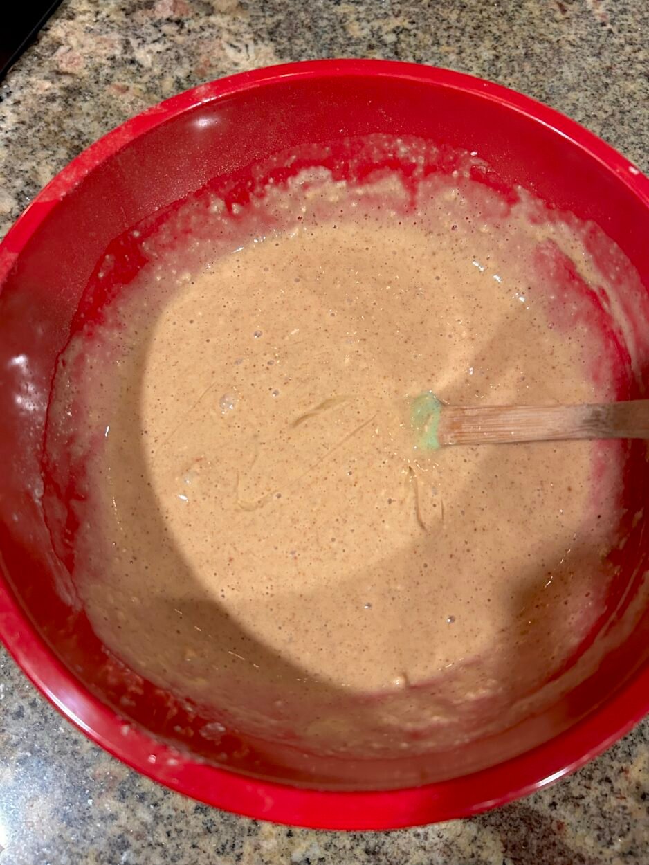 Mixing the Batter & Apples: It may seem a little daunting to mix the batter with the large pile of sliced apples, but it is really not too hard if you use a big enough bowl. Just gently fold the apples into the batter until it begins to distribute amongst them